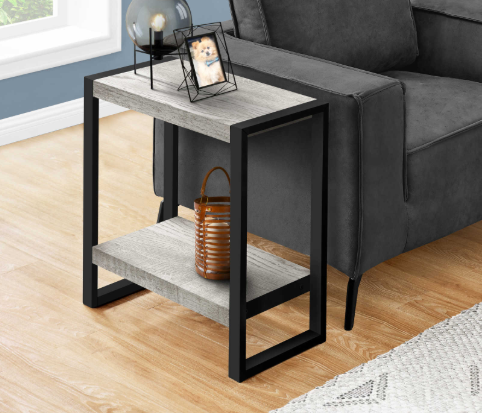 Le style de ferme industrielle combine le métal moderne avec une finition en bois rustique pour créer un look chaleureux et accueillant. Cette table d'appoint rectangulaire à deux niveaux incarne ce style populaire. Le plateau et la tablette inférieure sont finis dans un aspect de bois récupéré gris avec des variations de couleurs naturalistes et une texture subtile de grain de bois. Les pieds métalliques robustes au fini noir offrent stabilité et contraste visuel saisissant. Finie de tous les côtés, cette table d'appoint peut être positionnée dans toutes les directions pour s'adapter aux espaces étroits et larges d'un salon ou d'une chambre.