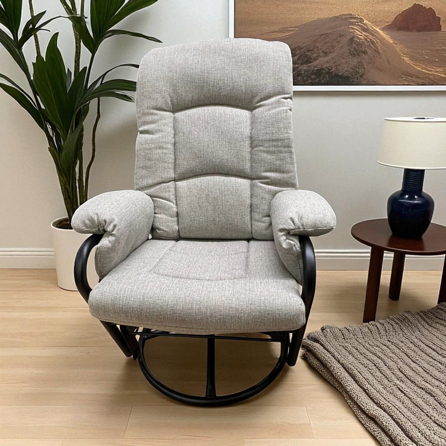 Fonctions : chaise berçante et pivotante, idéale pour relaxer en douceur.