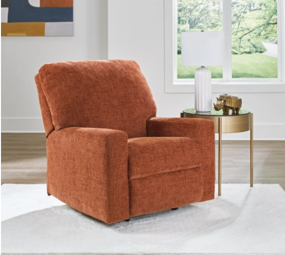 Faites vibrer votre décor, un fauteuil berçant inclinable qui marie audace et confort. Son tissu rouille éclatant ajoute une touche chaleureuse et tendance à votre salon, tout en vous offrant un confort douillet au quotidien.