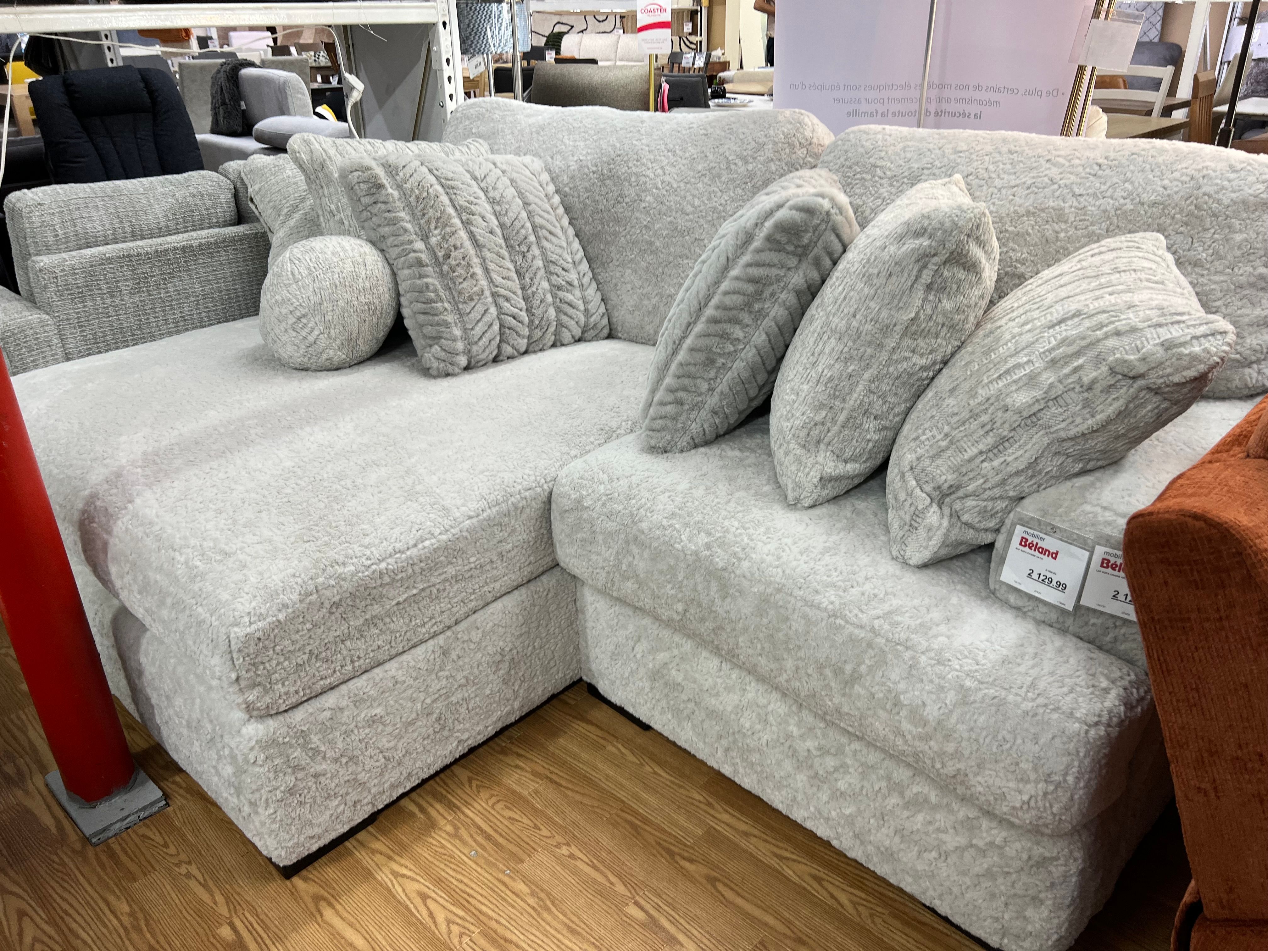 Le sectionnel peluche ultra doux est l’endroit rêvé pour se détendre pleinement après une longue journée. Son tissu ultra doux procure une sensation luxueuse sur la peau, tandis que ses assises généreuses et ses coussins moelleux offrent un soutien enveloppant, exactement là où il le faut.