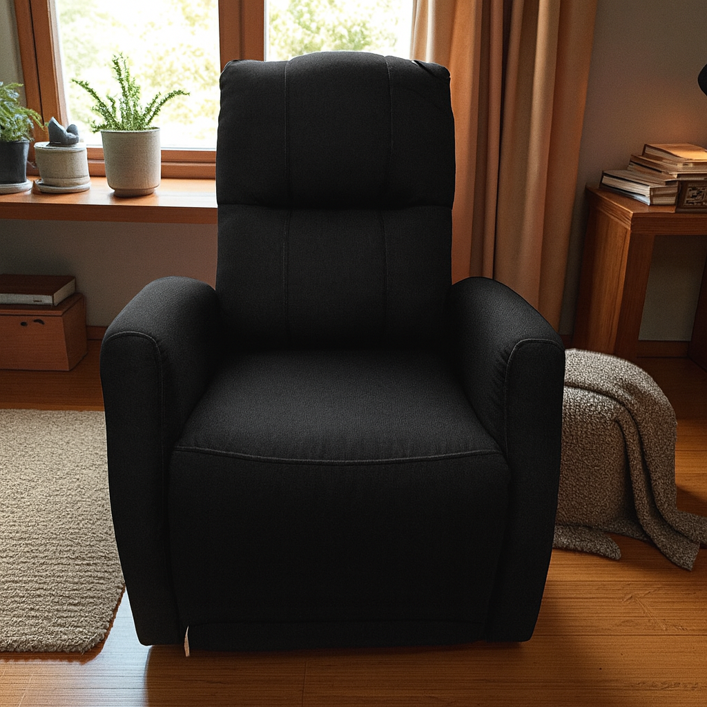 Confort, soutien et praticité réunis dans un seul fauteuil. Il fabriqué en tissu noir.