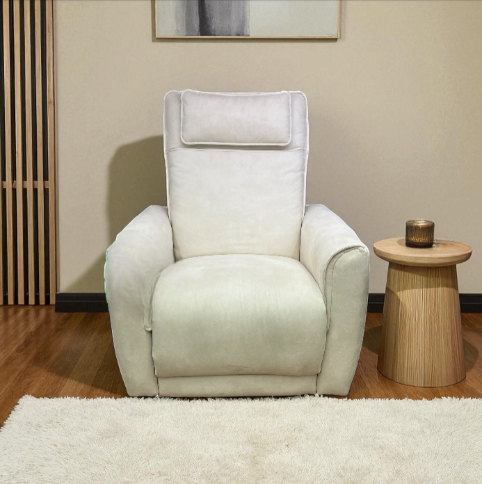 Apportez confort et style à votre espace avec ce fauteuil au tissue effet suede Ivoire, à la fois moderne et accueillant.