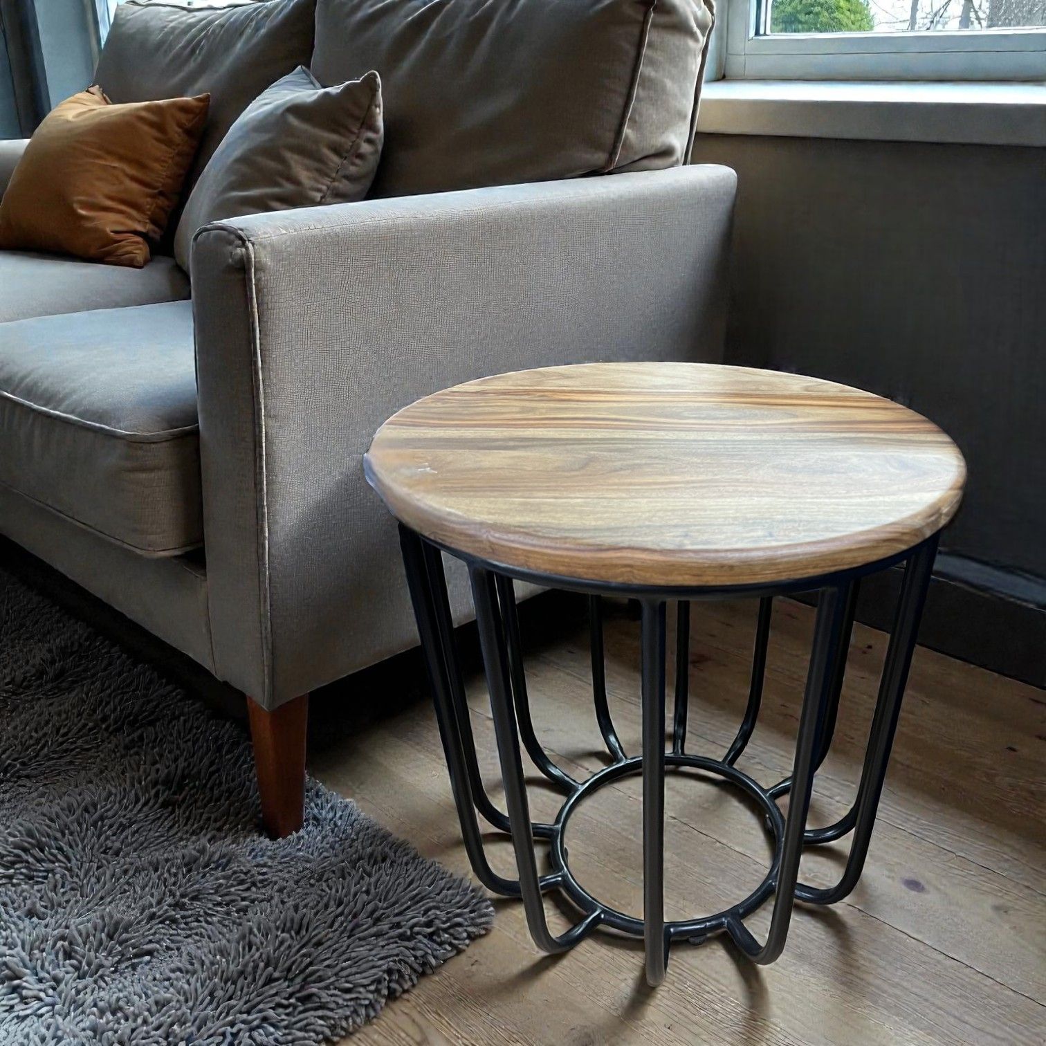 Table d’appoint ronde au style moderne et intemporel, conçue avec un plateau en bois massif de sheesham, reconnu pour sa solidité et ses riches veinages naturels. Chaque plateau présente des nuances uniques qui apportent chaleur et caractère à la pièce. Le piètement en métal noir aux lignes épurées offre une touche industrielle élégante tout en assurant une excellente stabilité. Compacte et polyvalente, cette table est idéale près d’un canapé, dans un salon ou comme table d’appoint décorative.
