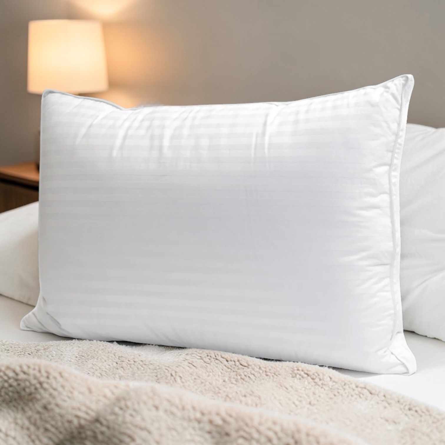 ◆ Contour en Duvet Blanc Européen et noyau central en plumes ◆ Hypoallergène ◆ 100% Coton 323 Fils rayés