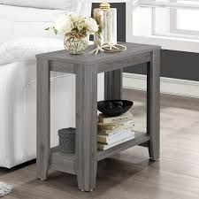 Réchauffez votre chez vous avec cette table d'appoint pratique qui s'agence avec tout type de décor de votre salon, chambre ou bureau. Munie d'un design à deux niveaux, la table de bout s'occupe de votre tasse de thé, vox fleurs, livres ou autres décorations à côté du divan ou du lit. Vous voulez une ambiance rustique et élégante? Cette table est conçue pour vous impressionner avec sa texture de bois en gris fini sur tous les côtés pour un petit meuble robuste qui comblera vos attentes.