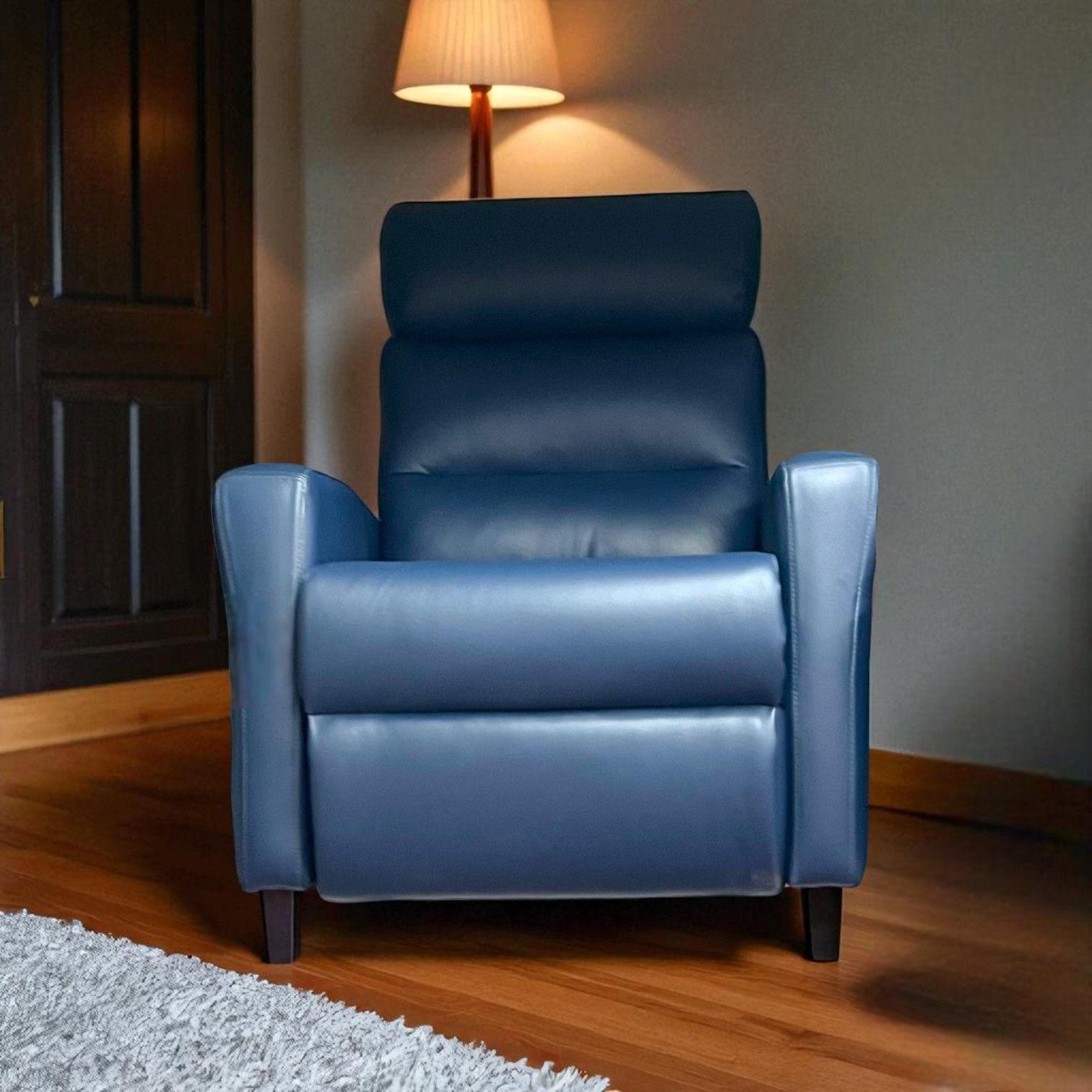 Son revêtement en cuir bleu véritable apporte une touche chic et intemporelle, facile à intégrer dans tout décor moderne ou classique.